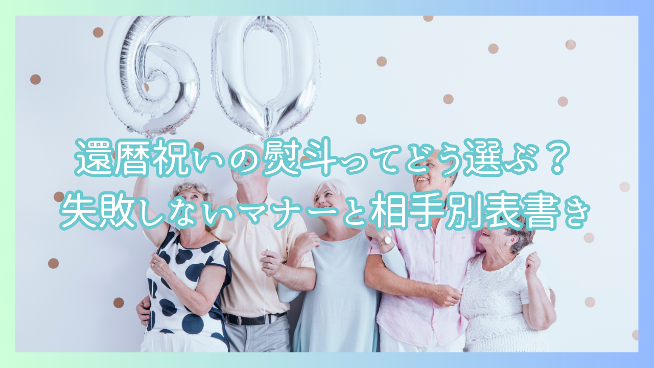 還暦祝いの熨斗選びでは、紅白蝶結びの水引を選び、表書きには「祝還暦」や「還暦御祝」など慶事にふさわしい文言を使うことが基本です。